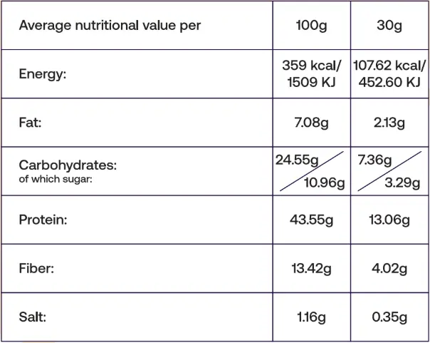 Pea protein – A plant-based protein rich in essential amino acids, it supports muscle repair and growth while being easy to digest.